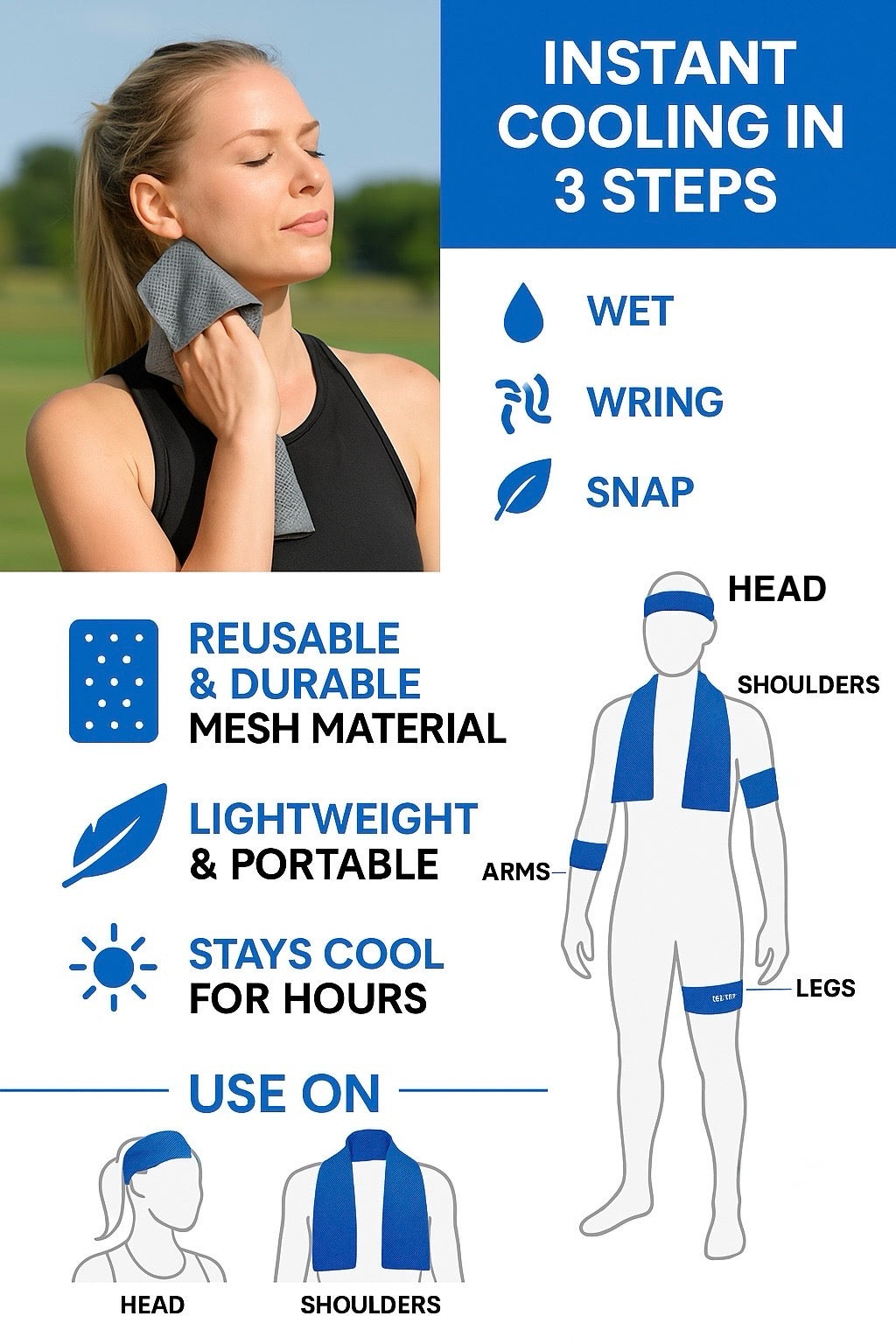 Just soak, rinse, and snap – and enjoy an instant cooling effect that lasts for hours.